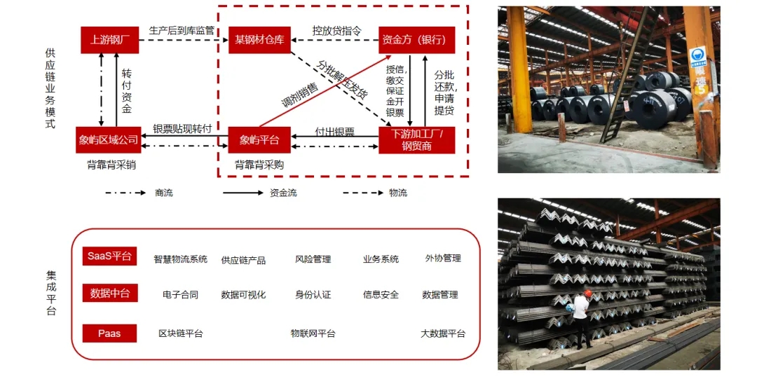 象嶼股份作為供應(yīng)鏈核心企業(yè),借助IOT(物聯(lián)網(wǎng))、區(qū)塊鏈、AI等技術(shù),圍繞塑化、鋁產(chǎn)品、鋼材等產(chǎn)品進(jìn)行倉(cāng)單質(zhì)押融資,通過(guò)數(shù)字化建設(shè),輔助背書(shū)客戶(hù)資信、貨權(quán)監(jiān)管和輔助銷(xiāo)售,獲取資金方的認(rèn)可,幫助中小微企業(yè)客戶(hù)增信,解決中小微企業(yè)融資難的問(wèn)題。目前象嶼智慧物流平臺(tái)已獲得建行總行、普洛斯等多家金融機(jī)構(gòu)數(shù)字化監(jiān)管倉(cāng)準(zhǔn)入,《人民日?qǐng)?bào)》等媒體也作了專(zhuān)題報(bào)道。
